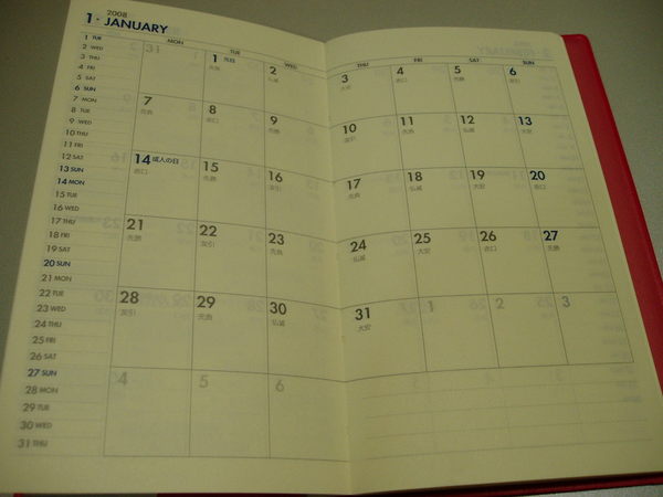 內頁是這樣的,以一個月為主;我覺得格子有點小,還不是很滿意,不過信義誠品進的手帳都很貴,要五、六百起跳,我覺得不是很合理,所以就將就一下啦 (這本小小本子也要NT300元喔! 也是滿貴的!)