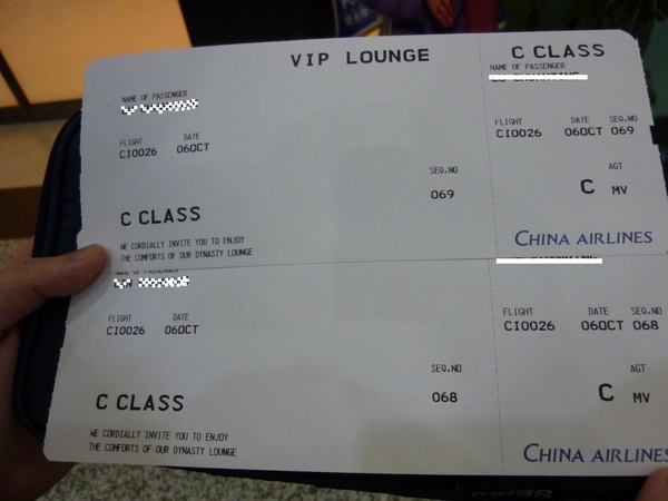 看到這個飛機的航班,真的只能佩服華航為什麼能給這麼鳥的時間呢? ANYWAY, 認真的小朋友當天還是去上了幾乎一整天的班,然後才安排接機的車六點到我家樓下接我到機場;六點雖然算是交通尖峰期,但是當天一路都還算順順的開,大約半小時就到機場了喔! 然後在指定地等送機的人員給我們一些資料,然後就順利的從櫃台小姐手中拿到 商務倉機票和VIPLOUNGE的使用卷了。