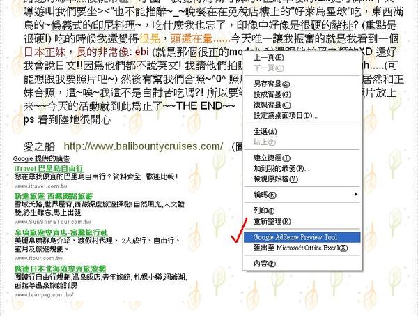 有時候我看我自己巴里島[bali]那些可愛[villa]的廣告照片,正常人也想點進去看一下啊~~昨天我跟朋友聊天,講到自己在新手期(一個月前)的時候也點過兩次廣告,不過是在安排放在文章內的時候不小心點到的過。他建議我寫信跟google說明一下;因為我是道德感很強的人XD,所以我就寫了~今天收到回信,他說我是一個好小孩,要我認真寫blog....(簡單來說是這樣沒錯) 還分享給我一些好東西,讓我可以免於這種困擾,所以今天就和大家分享~以後要點廣告點自己家的就可以了! (當然不計費啦~)