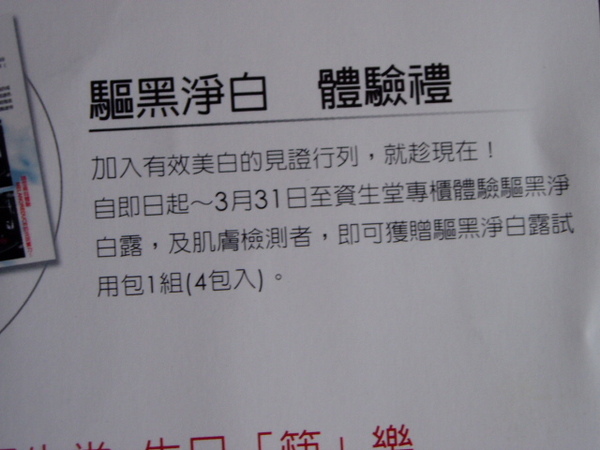 出了新的驅黑淨白露,臨櫃體驗可以換四小包驅黑淨白露。(請見照片)